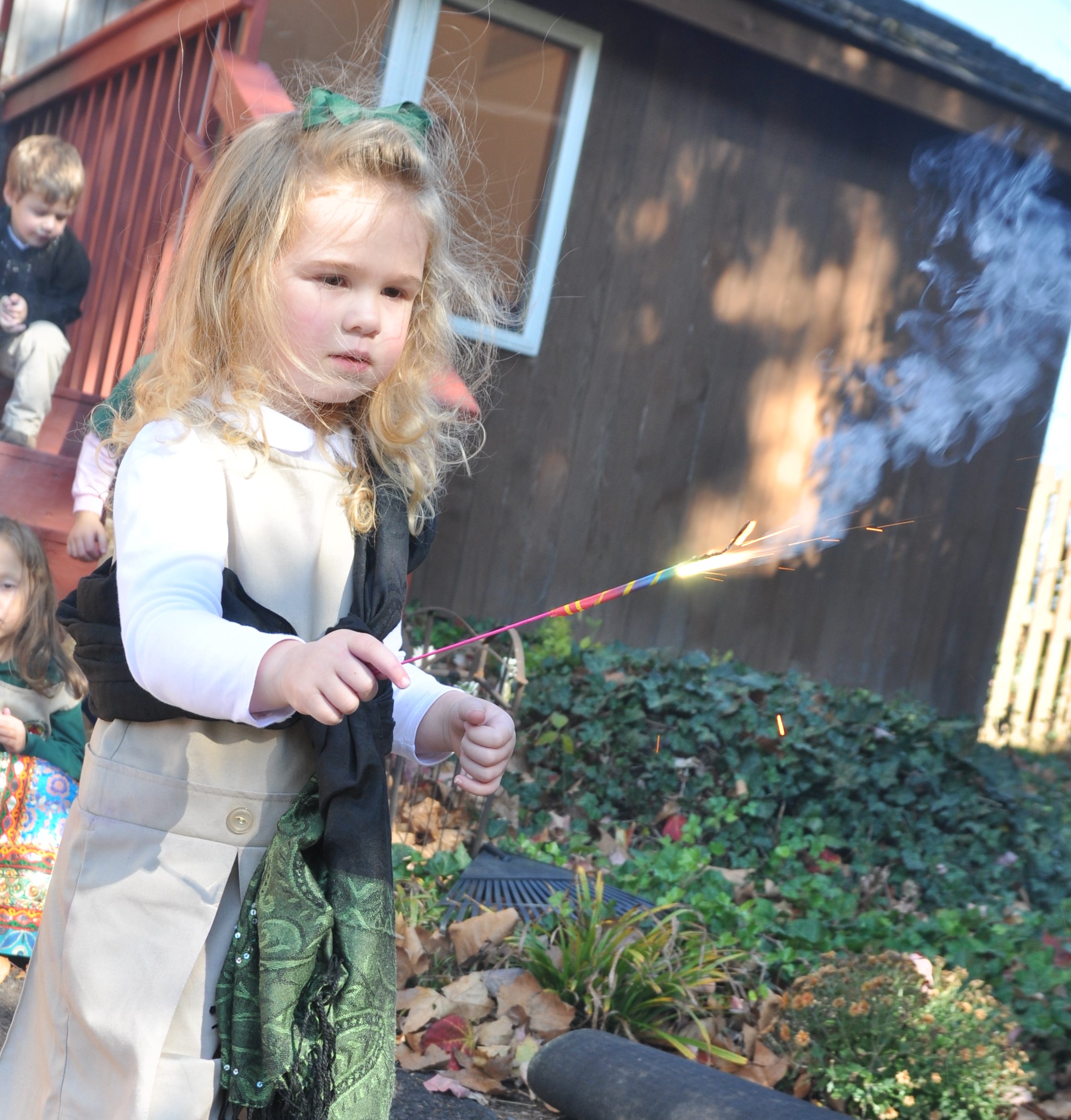 Last Friday, the children had a great time celebrating Diwali: the Festival of Lights with their friends and volunteer parents. We read a delightful book about Diwali and why we celebrate this wonderful holiday. The children were invited to dress up with traditional clothes, make beautiful sand pictures on the sidewalks, and eat a special treat. But the best part of the celebration was lighting up sparklers and gently wave them around for all to see.